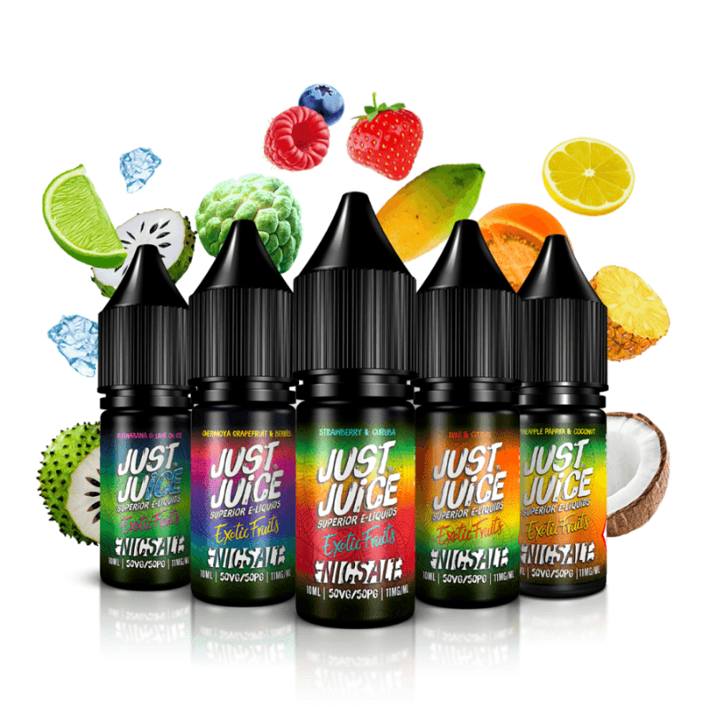 Just Juice erbjuder en mängd olika smaker, vanligtvis grupperade i kategorier som fruktblandningar, ice och exitiska frukter eller tobaksalternativ. Deras sortiment är känt för att vara smakrikt och högkvalitativt.