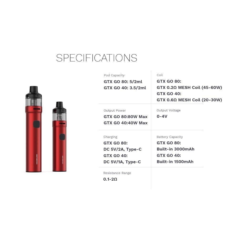 Specifikationer för Vaporesso GTX Go 40: