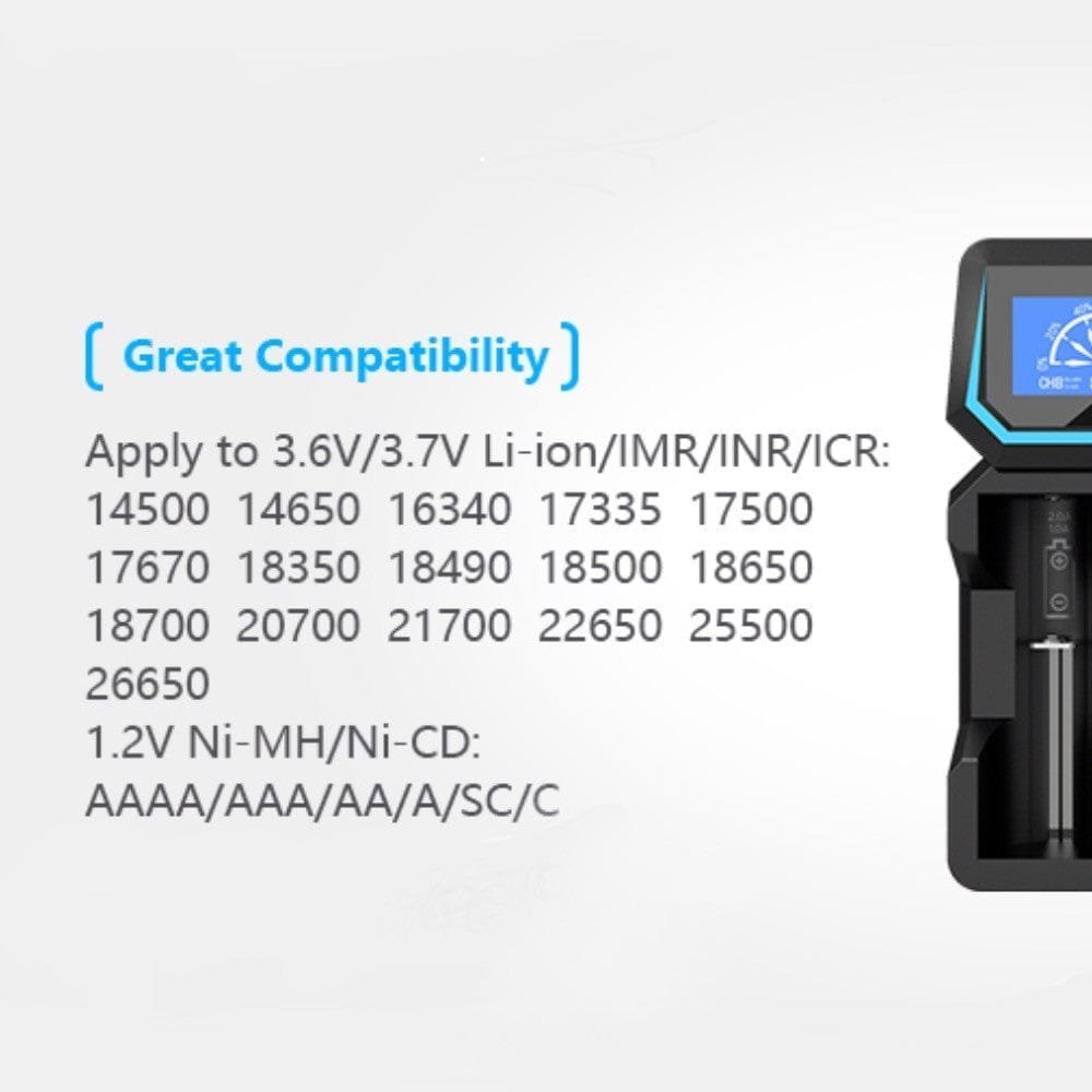 Kompatibel med 18650, 20700, 21700, 26650 och mer