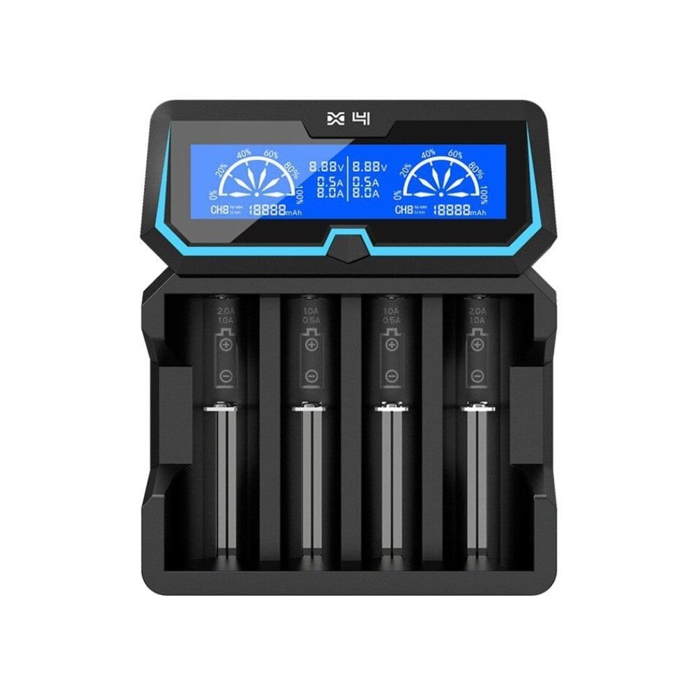 XTAR X4 4-slots snabb batteriladdare är designad för alla typer av Li-ion- och Ni-MH-batterier. Med en maximal laddningshastighet på 1A för alla 4 batterier eller 2A för två batterier är X4 enkel att använda och snabb samtidigt som den håller låga och svala temperaturer. Kompatibel med de vanliga batterierna som används i vapingenheter som 18650, 20650, 20700, 21700, 26650 och de flesta andra uppladdningsbara batterier